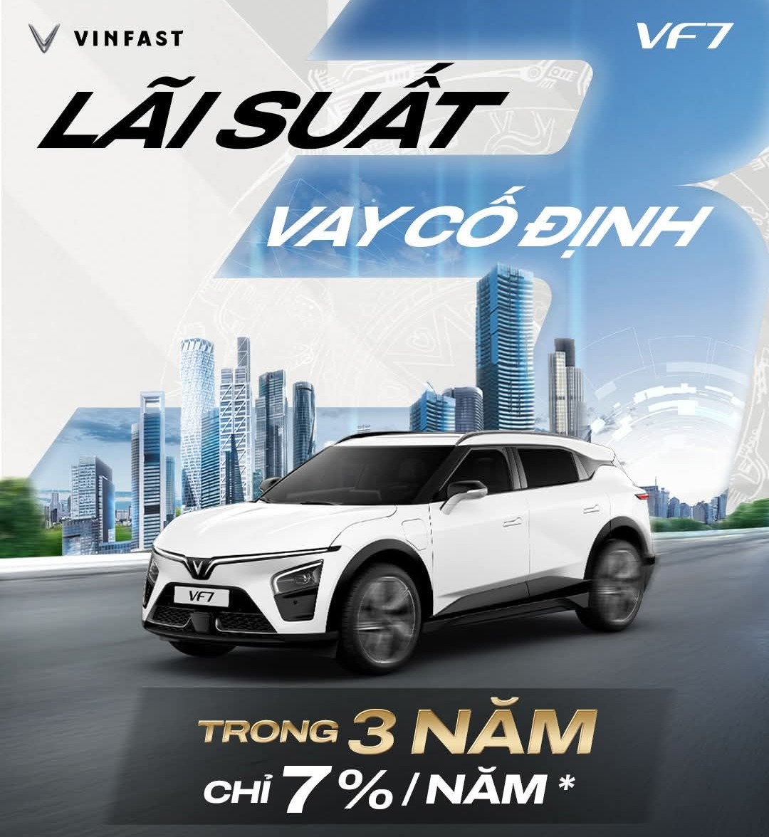 Theo đó, khách hàng có thể sở hữu VF 7 với lãi suất vay cố định chỉ từ 7%/năm trong 3 năm đầu tiên, cùng hàng loạt ưu đãi giá trị chưa từng có.