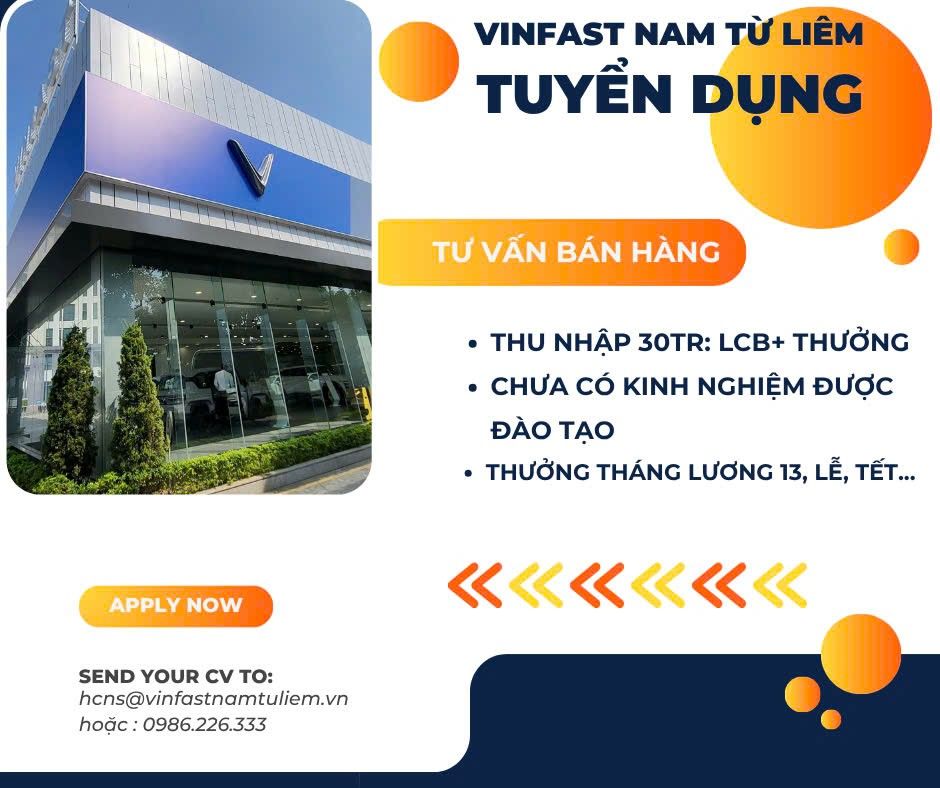 Tuyển Dụng Nhân Viên Kinh Doanh Ô Tô VinFast Nam Từ Liêm